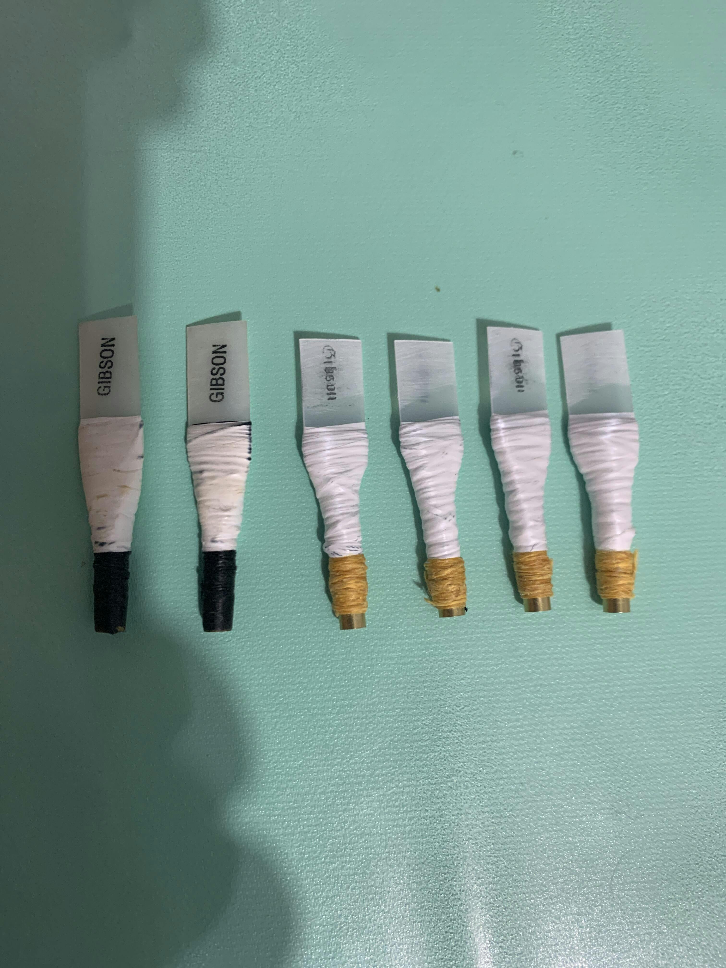 The reeds are actually bent. Don’t know if from the wrapping pressure or just the position of the reed blades, but definitely skewed. Also seems to be different than previous reeds ordered in the older reeds had black wrap & were longer in length.
